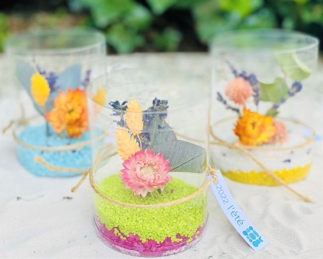 内容:アートキット[ドライフラワー、カラーサンド(色砂)、オアシス、麻ひも、プティ シガール、ドリンク(コーヒーまたは紅茶またはジュース)]