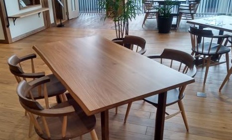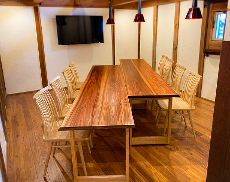 Gywood(R)を使用した幅広一枚板がテーブルに加工され、美しい木目を主役にしています。熟練の技術により、 国産材の良さを際立たせ、長く大切に愛用していただけるようなデザインとなっています。