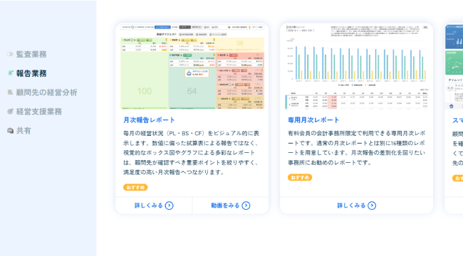 株式会社YKプランニングが企画・開発・販売・サポートする経営支援クラウドです。多種多様な会計ソフトのデータに対応し、会計データの自動チェック機能から月次の経営状況の把握・現状分析や経営計画の作成など多彩なコンテンツを提供しています。また、企業や会計事務所だけでなくコンサルタント、金融機関等とデータを共有する機能も備えており、無料でご利用を開始していただけるようになっています。インターネットブラウザやスマホ・タブレットなどマルチデバイス対応をしています。