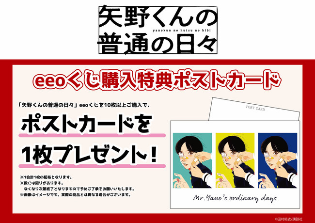 株式会社A3は、WEBコミック配信サイト『コミックDAYS』で連載中『矢野くんの普通の日々』よりオンラインくじ『eeoくじ』の発売を開始いたしました。