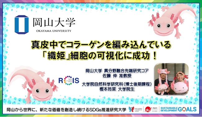 国立大学法人岡山大学(本部:岡山市北区津島中、学長:槇野博史)異分野融合先端研究コアの佐藤伸准教授、大学院自然科学研究科の樫本玲菜大学院生は、基礎生物学研究所の亀井保博特任准教授、野中茂紀准教授、坂本丞特任助教の協力のもと1細胞イメージング手法を改良し、真皮中において1細胞が編み出すコラーゲンとコラーゲンの編み手細胞の形態を捉える事に成功しました。