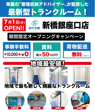 【7月1日(金)オープン】見学から契約、解約まで完全非接触・非対面、お申し込みからご利用まで最短1時間!都内にて絶賛運営中のトランクルーム【スペラボ】が港区新橋駅前に出店!