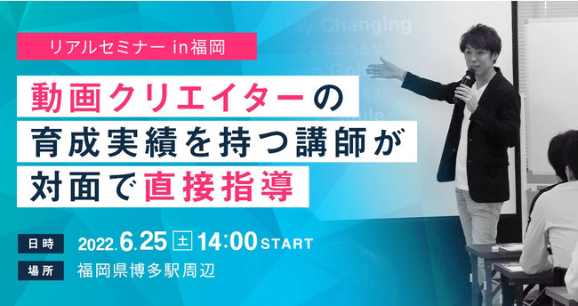 この度ワクジョイの運営主体である株式会社クリートでは、6月25日に福岡県博多区において動画作成におけるソフトの使用方法や、編集ポイントなどの細かなスキルを受講生の課題ごとに個別指導する対面セミナーを開催することをお知らせします。