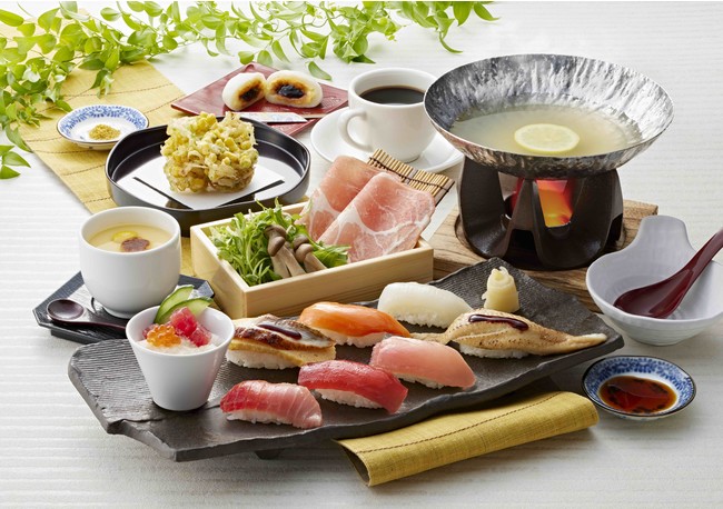 平日ランチタイムに販売する「夏のゆず庵松花堂ランチ」と「季節の上寿司御膳」が、季節限定の献立で登場。ほかにも、「鮪づくしとうどんしゃぶ膳」と「熟成牛すき焼き膳」も販売いたします。デザート・ドリンク付きのセットは、夏のデザート3種からもお選びいただけます。