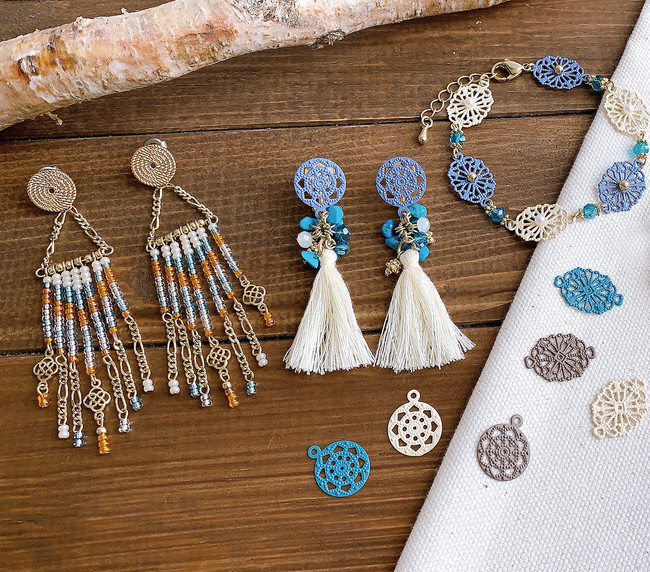透かしのデザインが涼しげな、夏にぴったりのイヤリング&ブレスレット