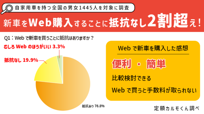 そこで、定額カルモくんでは、自家用車を持つ男女1,445人にWebで車を買うことに対する意識調査を実施いたしました。