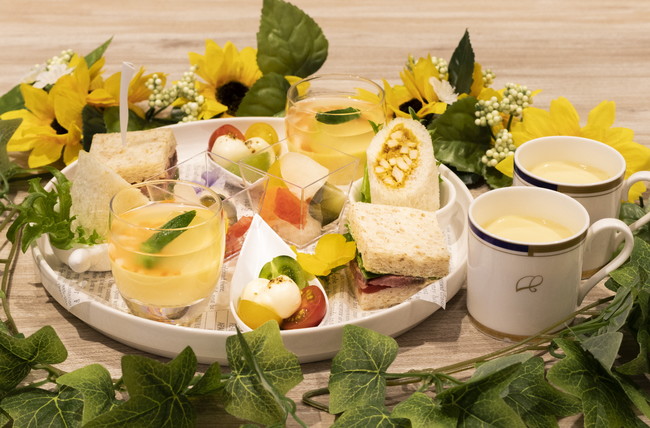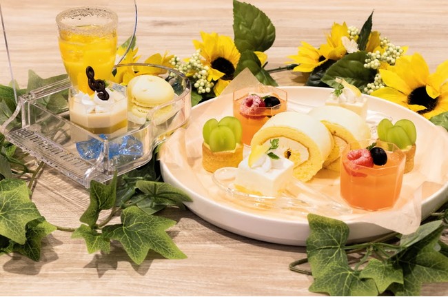 夏の果実として、オレンジやシークワーサー、ルビーグレープフルーツ等の色鮮やかな甘酸っぱい果実と、優しい甘さのマスカットやレアチーズケーキで飾る「Sweets Plate(スイーツプレート)」、夏野菜を使ったカラフルな色彩とほのかな酸味がスイーツともマッチする「Light Meal Plate(ライトミールプレート)」の2段プレートに加え、ホテルパティシエが焼き上げる自家製スコーン3種の食べ放題とドリンクがセットになった、美味しくてフォトジェニックな季節のアフタヌーンティーをお楽しみください。