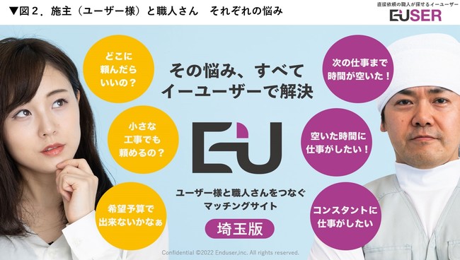 サービスの利用者と職能人材をダイレクトにつなぐマッチングプラットホームを提供する株式会社エンドユーザー(本社:埼⽟県熊谷市、代表取締役:渡邉佳津子 https://enduser.jp 以下 エンドユーザー)は、6月15日よりユーザー目線にこだわったリフォーム専門の公開市場「イーユーザー https://e-user.jp」のβ版をオープンします。