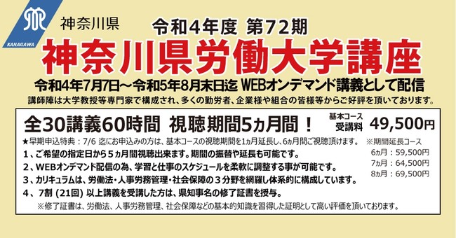 令和4年度 第72期 神奈川県労働大学講座 開講!