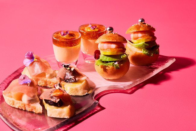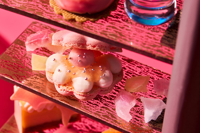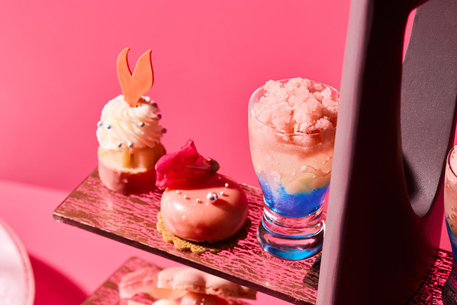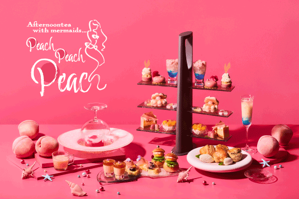 この季節に旬を迎える桃を使用して、楽しげなマーメイドたちのティーパーティーを表現しました。8種のスイーツとカナッペやプティバーガーなどのセイボリー、「クリームチーズ」と「桃とラズベリーのジャム」の2種のソースでいただくスコーンなどをお召し上がりいただけるアフタヌーンティーです。