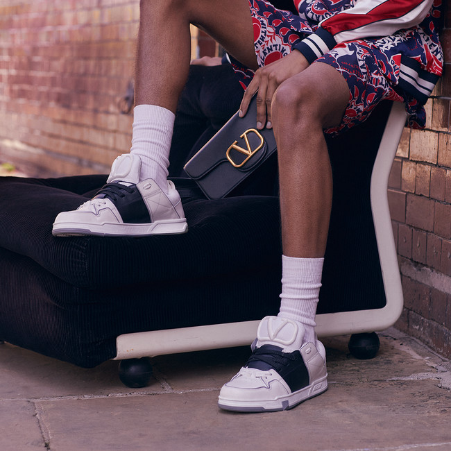 ヴァレンティノ2022年フォール ‘アフタークラブ’ メンズコレクションと ‘プロムナード’ ウィメンズコレクションで初めて登場したこのスニーカーは、タンの大胆なVロゴ シグネチャーからサイドソールにあしらわれたアイコニックなワンスタッズ、そしてフロントにあしらわれたスモールスタッズまで、メゾンを代表するエレメントとシェイプが取り入れられています。