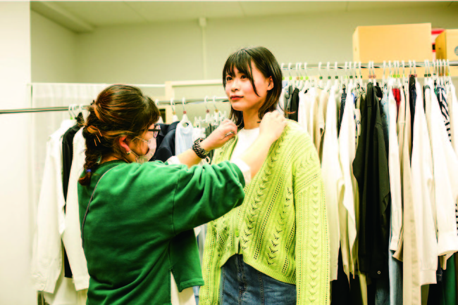 また、撮影当日には、GUスタッフに衣装の着こなし方などを教えて頂き、普段とは違う印象に戸惑いながらも、ファッションを楽しむ姿が見受けられました。学生が楽しく企画に取り組めたことが何よりの成果でした。