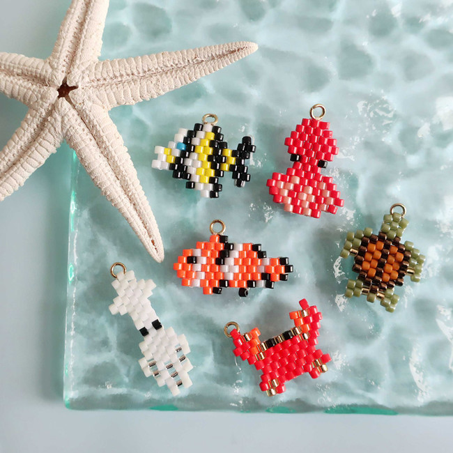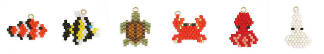 海に住む生き物たちに焦点を当てた、かわいいマリンモチーフ(海のいきもの)のビーズステッチチャーム