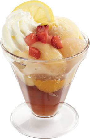 シロップ漬けのミックスフルーツやジューシーな白桃のコンポート、フローズン苺、フレッシュレモンをトッピング。
