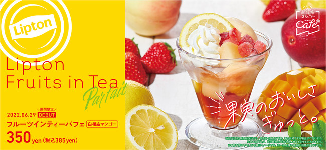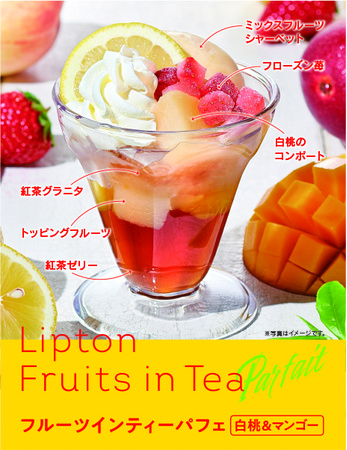 株式会社あきんどスシロー(本社:大阪府吹田市、代表取締役社長:新居 耕平)は、この度エカテラ・ジャパン・サービス株式会社(本社:東京都目黒区、ジェネラル・マネジャー:光宗 晃子)が展開する紅茶ブランド「リプトン」とコラボレーションすることが決定しました。「リプトン」の夏の定番であり、大人気アイテム「フルーツインティー」を、“スシローカフェ部”が豪華なパフェに仕立てました。“スシローカフェ部”×「リプトン」のコラボ商品「フルーツインティーパフェ(白桃&マンゴー)」は6月29日(水)より全国のスシロー※にて期間限定で販売いたします。
