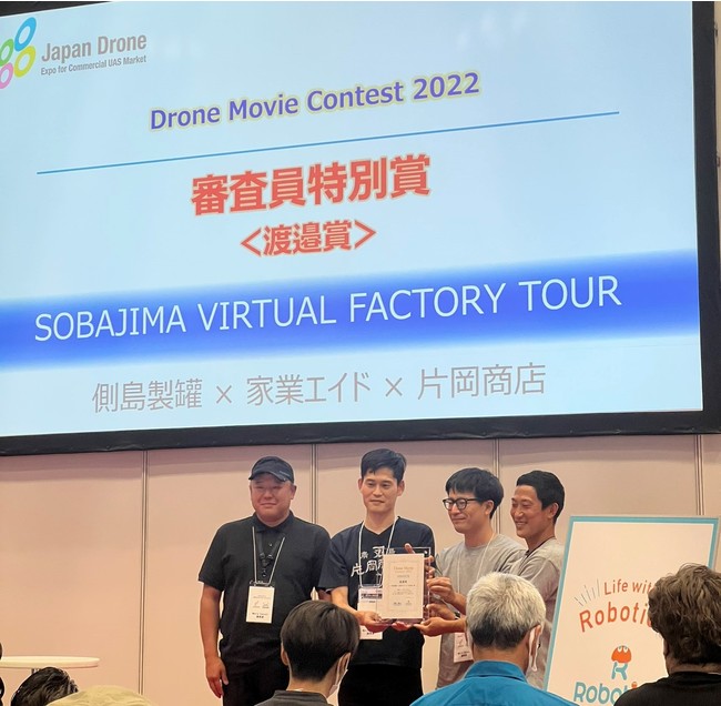 そして缶1つ1つに想いを込めて製造する社員さんと様々なプレス機が稼働する工場をワンカットで撮影した作品を、全国的なドローン動画コンテスト「Drone Movie Content 2022」に応募した結果、6/21 幕張メッセで開催された表彰式にて審査員特別賞を受賞しました。