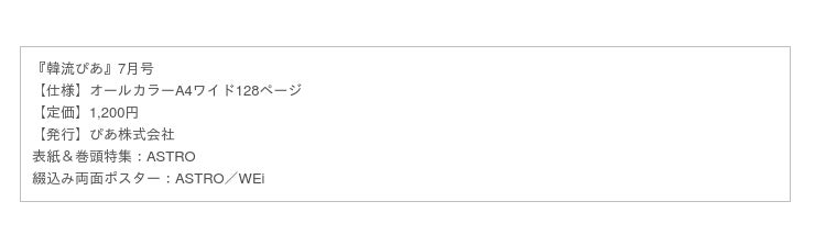 【本日発売】『#韓流ぴあ』7月号 #ASTRO 2度目の表紙、巻頭20ページ大特集!