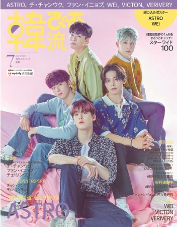 2022年7月号の表紙巻頭を飾るのは、最年長メンバーMJが入隊し、5人で活動を始めた人気ボーイズグループASTRO。巻頭インタビューでは、5月にリリースした3rdフルアルバム『Drive to the Starry Road』をテーマに、グループと個々の魅力に接近。各人のMJへのメッセージも超必見!爽やかかつ温かみある2パターンの美麗のグラビアとともにお届け。約4年ぶりとなる日本単独ライブのレポートを含む、巻頭20ページ、たっぷりASTROをお楽しみください。
