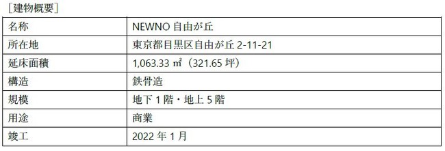 三井住友ファイナンス&リース株式会社(取締役社長:橘 正喜)の戦略子会社、 SMFLみらいパートナーズ株式会社(取締役社長:寺田 達朗、以下「SMFLみらいパートナーズ」)は、目黒区自由が丘にて開発を進めておりました商業ビル「NEWNO自由が丘」が、2022年6月23日(木)に開業することをお知らせします。