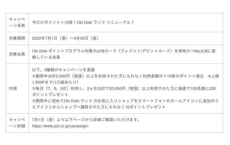 株式会社ジェーシービー (本社:東京都港区、代表取締役会長兼執行役員社長:浜川 一郎、以下:JCB)は、JCB会員を対象としたポイント優待サイト「Oki Doki ランド」を本日サイトリニューアルしました。