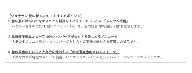 【夏の新メニュー】https://www.skylark.co.jp/jonathan/menu/fair/index.html