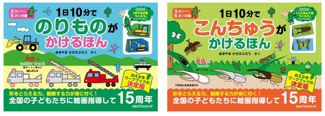 「児童絵画指導のカリスマ」あきやまかぜさぶろう先生の最新版おえかきワークブック 2冊同時発売! 『1日10分で のりものが かけるほん』『1日10分で こんちゅうが かけるほん』