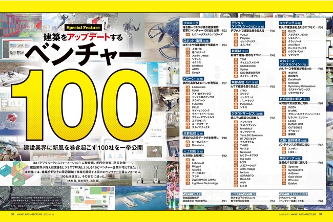 日経アーキテクチュアの2022年6月23日号では「建築をアップデートするベンチャー100」という特集が組まれ、建築分野とその周辺領域で事業を展開する国内のベンチャー企業の中から100社が選定されました。そしてその中のAI部門に燈が選出されました。