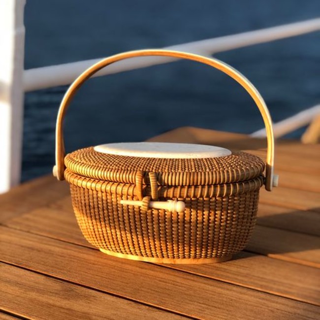 アメリカの伝統工芸品として尊重されてきたナンタスケットバスケットは、用途によって形もデザインも様々で、発祥の地が捕鯨で栄えていたこともあり、海やクジラなどをモチーフとする装飾品が添えられているものも多くあります。