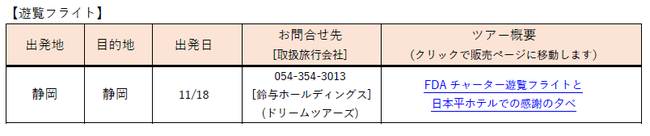 現在募集中の、FDAチャーター便を利用した旅行ツアーのご案内です。