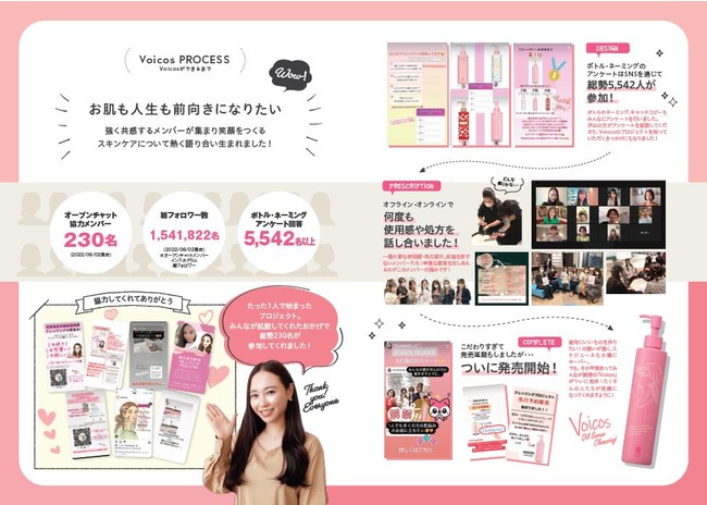 このような経験を通して「クレンジングの大切さを知ってほしい」「同じように前向きに輝ける人が一人でも増えてほしい」というりえもんさんの想いに明色化粧品を含め、SNSで知り合ったメンバーが共感し、理想のクレンジング開発を決意しました。“みんなが本当に欲しいクレンジングオイル”を開発するプロジェクト「Voicos(ヴォイコス)プロジェクト」が2021年に始動しました。