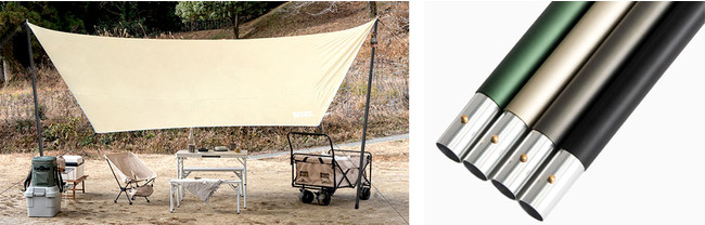 28段階の高さ調節が可能!メインで使えるテント・タープポール登場。タンスのゲンより自在な張り方対応の最”硬”のアルミポール発売