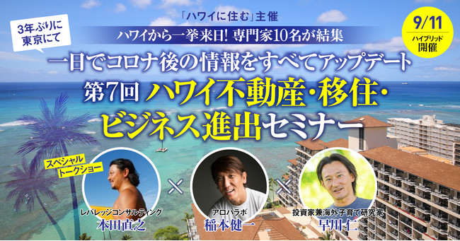3年ぶりに東京で開催!第7回「ハワイ不動産・移住・ビジネス進出セミナー」 in 東京!ハワイの各専門家10名が一挙来日。1日でコロナ後の情報をすべてアップデート【ハイブリッド開催】
