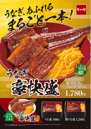 株式会社なか卯(代表取締役社長:平山 賢太郎 本社:東京都港区)が展開する丼ぶりと京風うどんの「なか卯」では7月7日(木)AM11:00より、「うなぎ 豪快盛」を今年も販売します。