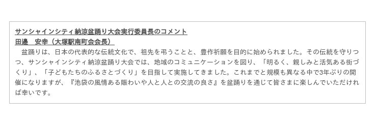 第43回サンシャインシティ納涼盆踊り大会 概要