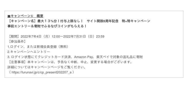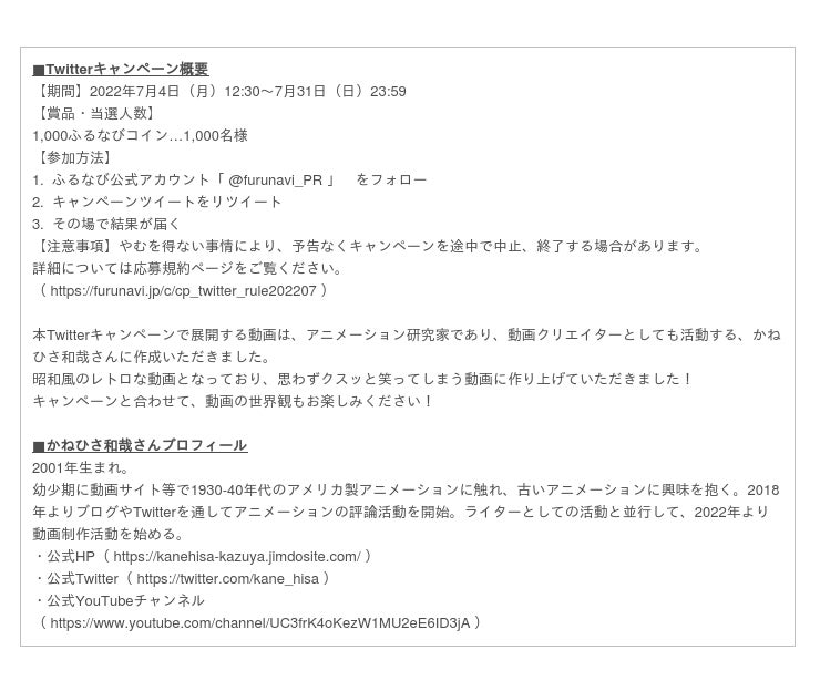 また、キャンペーンの開催を記念し、2022年7月4日(木)12:30より、抽選で1,000名様に1,000ふるなびコインが当たるTwitterキャンペーンも開始しました。