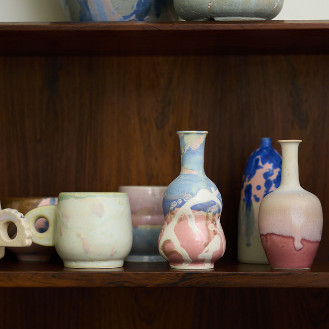 幾重にも折り重なる釉薬が織りなす色彩美と遊び心。繊細なタッチが生み出す造形美は唯一無二。