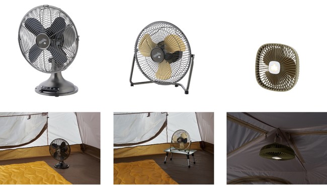 暑い夏のアウトドアシーンで活躍する「野電 蓄電式 扇風機」シリーズ3種を、これからの季節のアウトドアライフでぜひともご活用ください。