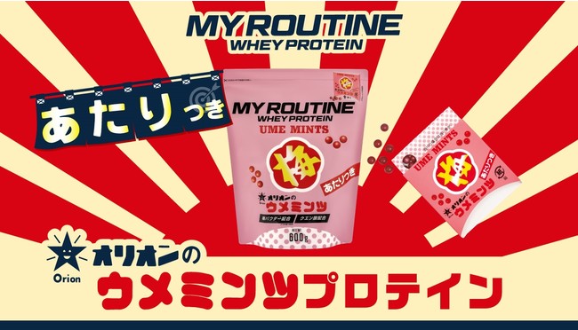 プロテインブランド「マイルーティーン」と、オリオン株式会社が昭和54年に発売した、「梅ミンツ」の当たり付きバージョン「当たり梅ミンツ」とのコラボレーションプロテイン。40年以上愛された程よい甘酸っぱさをプロテインで再現し、さらにあたりくじ付きも再現。