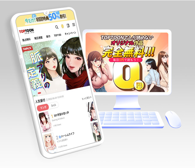 また今回配信開始の日本版では、TOPTOONが保有するヒット漫画作品はもちろん、TOPTOONだけで出会える独占作品も多数提供されます。6月から1か月間設けられたプレオープン期間中には、『工学ヘヴン』、『Yummy×Yummy』、『お姉さんの友達』など合計30以上の独占作品が公開され、既にTOPTOONのサイト内の人気漫画ランキングの上位を占めています。特に、全作品がフルカラーで制作されており、青年作品をより鮮やかに楽しめるのが特徴です。