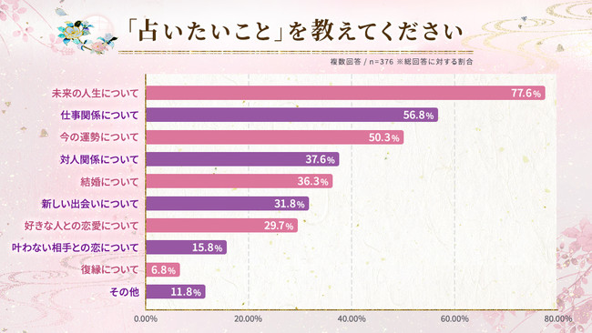 上記の回答の中で実際にどんなことを占いたいか、という質問に対し以下のような回答を得ることができました。