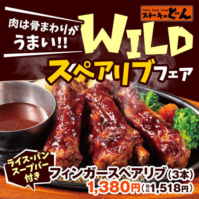 「ステーキのどん」で7月8日(金)より「WILD スペアリブフェア」開始。圧倒的な存在感の骨付きスペアリブがフォークでほぐせるやわらかさ!