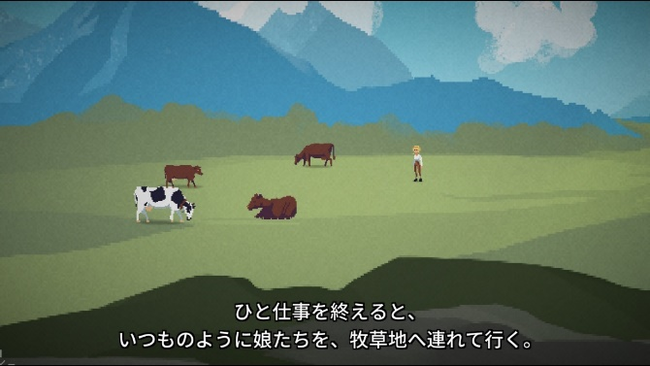 どこか懐かしい雰囲気のドット絵で描かれた、牧歌的な雰囲気が漂う世界から、牛たちが宇宙船にさらわれたのをきっかけに、物語は大きく動いていきます。その結末を是非自分の目で確かめてみましょう!