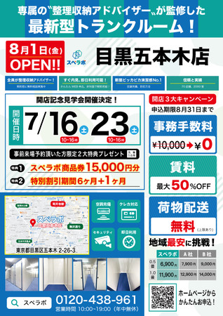 【8月1日(月)オープン】見学から契約、解約まで完全非接触・非対面、お申し込みからご利用まで最短1時間!都内にて絶賛運営中のトランクルーム【スペラボ】が目黒区五本木に出店!