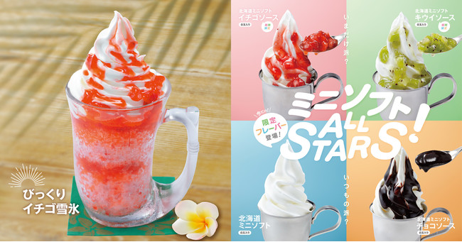 ふわふわ食感と雪のような口どけのびっくりドンキーのかき氷「イチゴ雪氷」が期間限定で販売!北海道ソフトクリームは「イチゴソース」と「キウイソース」の限定フレーバーが登場!