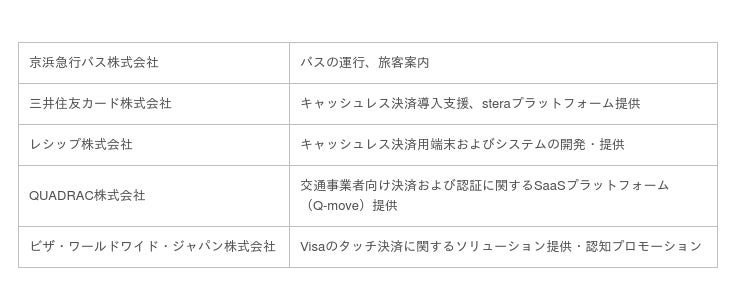 京浜急行バス株式会社(本社:神奈川県横浜市、取締役社長:野村 正人)、三井住友カード株式会社(本社:東京都江東区、代表取締役社長:大西 幸彦)、レシップ株式会社(本社:岐阜県本巣市、代表取締役社長:杉本 眞)、QUADRAC株式会社(本社:東京都港区、代表取締役社長:高田 昌幸)、ビザ・ワールドワイド・ジャパン株式会社(本社:東京都千代田区、代表取締役社長:スティーブン・カーピン)は、2022年7月15日(金)から1年間、京浜急行バス株式会社が運行する「羽田空港~横浜駅(YCAT)線」並びに「横浜駅(YCAT)~羽田空港線」において、三井住友カードが提供する公共交通機関向けソリューション「stera transit」を活用し、「Visaのタッチ決済」の実証実験を行います。なお、羽田空港発のリムジンバスとしては、初の取り組みです。