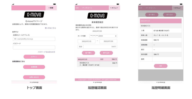 交通事業者向け決済及び認証のプラットフォームを提供するQUADRACのQ-moveサイト(https://q-move.info/)にアクセスいただき、「マイページ」の会員登録手続きの後ご覧いただけます。