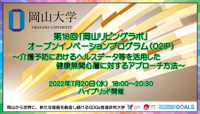 【岡山大学】第18回「岡山リビングラボ」オープンイノベーションプログラム(O2IP)「介護予防におけるヘルスデータ等を活用した健康無関心層に対するアプローチ方法」〔7/20 水,ハイブリッド開催〕