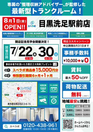 【8月1日(月)オープン】見学から契約、解約まで完全非接触・非対面、お申し込みからご利用まで最短1時間!都内にて絶賛運営中のトランクルーム【スペラボ】が目黒区洗足に出店!