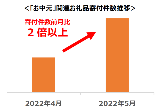 ■お中元シーズンを前に「お中元」関連のお礼品寄付件数が前月比で2倍以上に増加