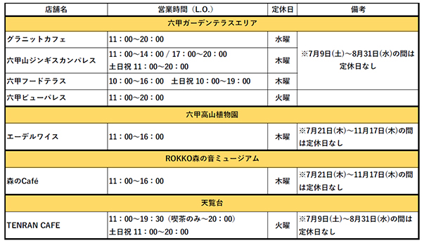 ※会期中無休。ただし六甲山サイレンスリゾートのみ8月~10月の毎週月曜休業。